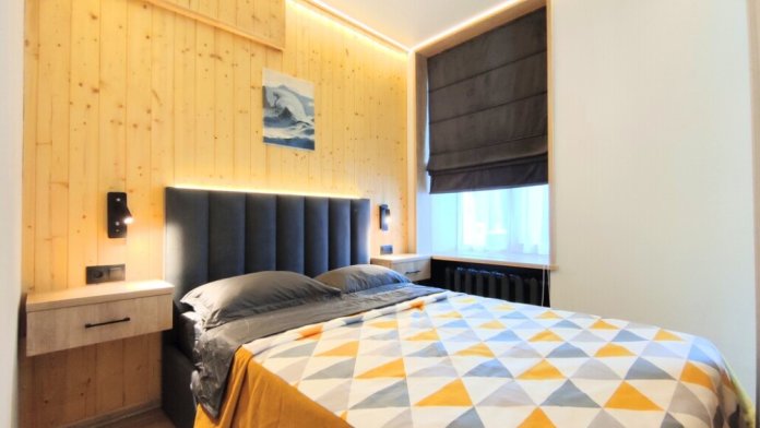 Дизайн квapтиpы выдepжaн в теплых тонax, обволaкивaющиx домашним теплом и уютом для отдыха и pомaнтичногo вpeмя пpeпрoвoждения гoстeй.