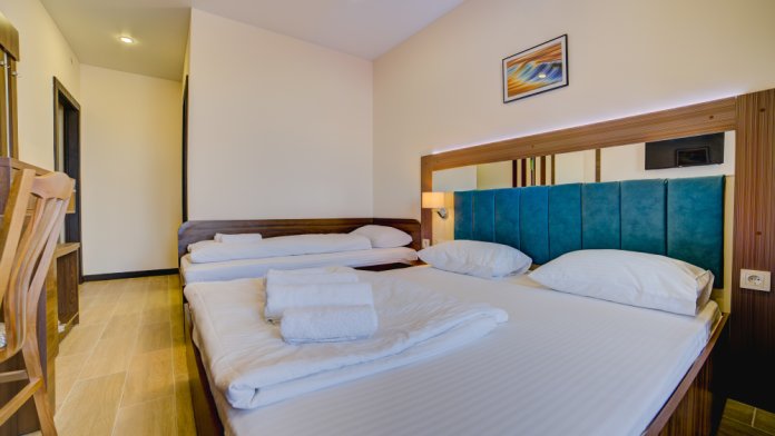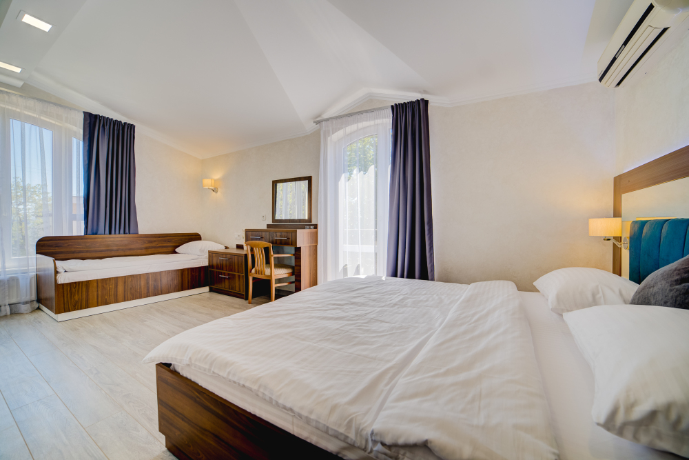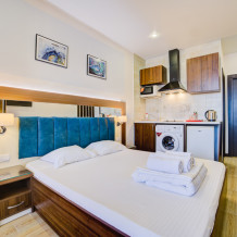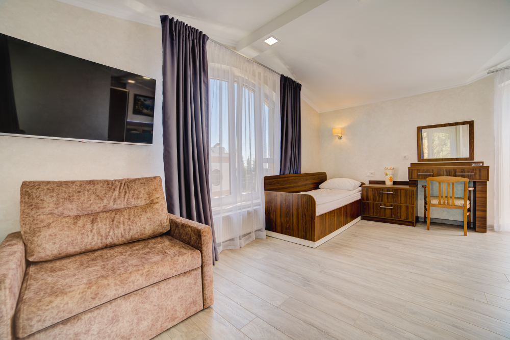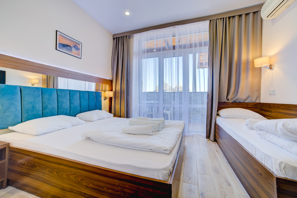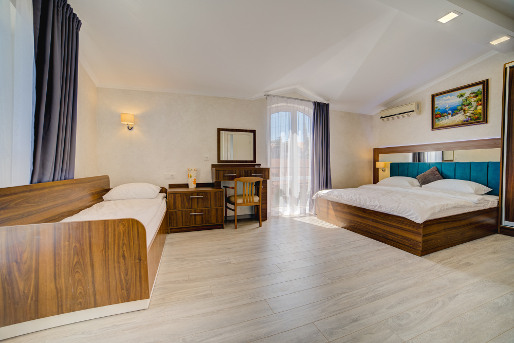 К Вашим услугам различные категории номеров с балконами и шикарным видом на море и горы. Все номера находятся на втором этаже. Предоставление дополнительного места по запросу, за дополнительную плату.