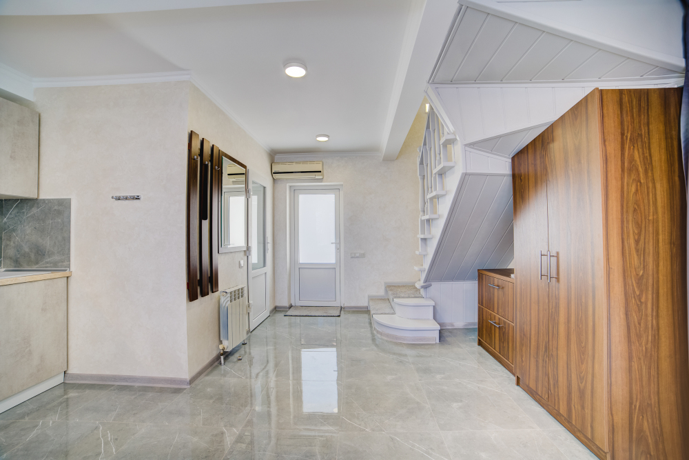 Площадь - 65 кв м. С отдельным входом, предусмотрено размещение до 5 человек. На каждом этаже есть кондиционер. На 1 этаже: диван-кровать, бытовая техника, плита, стиральная машина, посуда, туалетные, банные и гладильные принадлежности, санузел с душевой кабиной. На 2 этаже: двуспальная и односпальная кровать, раскладное кресло, ж/к телевизор, 2 французских балкончика. Уборка и смена постельного белья – раз в пять дней.