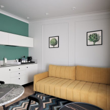 Номера категории Полулюкс – это комфорт и стиль в сочетании с классическим интерьером. Просторный номер располагает большими удобными кроватями с ортопедическим матрасом и гипоаллергенным постельным бельем, ванной, отдельной зоной с кухонной гарнитурой, современным техническим оснащением, шторами Блэк-аут.