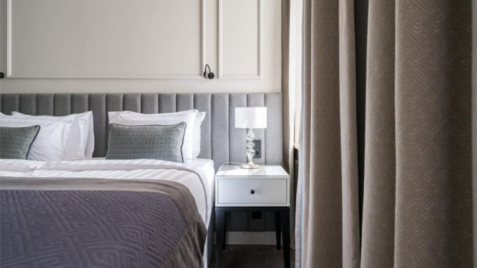 В номере имеется большая, удобная кровать, ортопедический матрас, гипоаллергенное постельное белье, современное техническое оснащение, шторы Блэк-аут.