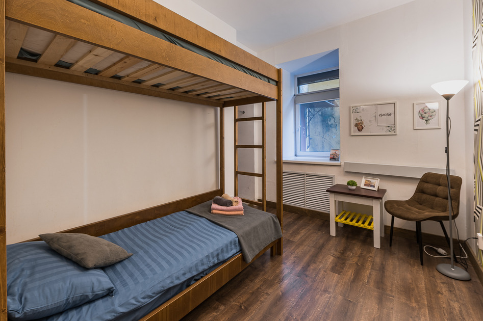 Номер прекрасно вмещает в себя 2 или 3 человека. На 1 этаже, окна во двор, всегда тишина и покой. Двор уютный, правильной формы с палисадником. Удобства на этаже. Два санузла, два душа, все отдельно. Безукоризненная чистота в общественных зонах: на кухне, в туалете и в душевой.