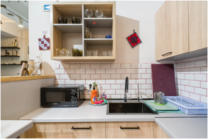 В Вашем распоряжении: посуда, холодильник, микроволновая печь, чайник, тостер.
