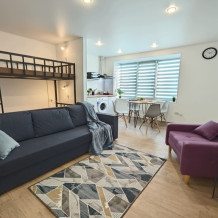 Свежее постельное белье и полотенца, посуда, ТВ, бесплатный Wi-Fi, двуспальная кровать-трансформер, которая с легкостью может стать 1+1, диван, кресло-кровать и двухъярусная кровать.