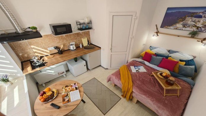 Свежее постельное белье и полотенца, посуда, ТВ, бесплатный Wi-Fi, двуспальная кровать-трансформер, которая с легкостью может стать 1+1. Закрытая территория и собственная парковка.