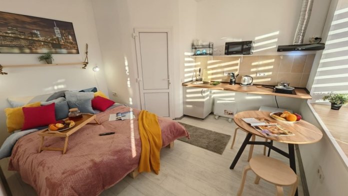 Свежее постельное белье и полотенца, посуда, ТВ, бесплатный Wi-Fi, двуспальная кровать-трансформер, которая с легкостью может стать 1+1. Закрытая территория и собственная парковка.