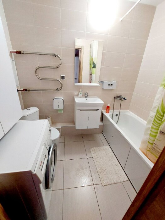 ️Бытовая техника: холодильник, стиральная машина, микроволновая печь, утюг с гладильной доской, электрический чайник, фен.