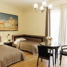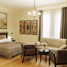 Просторные номера с высокими потолками и французскими балкончиками расположены на первом и втором этажах отеля, и предлагают все современные удобства. Отдохните с видом на музейно-храмовый комплекс, а непревзойденный уровень сервиса сделает Ваше пребывание поистине незабываемым.
