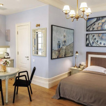 Пространство однокомнатной студии разделено на зоны уютной спальни и гостиной с собственной мини кухней. В номере двуспальная кровать и дополнительное место (раскладной двуспальный диван). Ванная комната (ванна/душевая кабина).