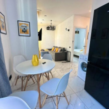 В апартаментах есть все необходимое для комфортного отдыха: телевизор 100 каналов, бесплатный wi-fi, кондиционер, фен, утюг, сушилка, стиральная машина, холодильник, микроволновка, тостер, чайник, кофе машина, электрическая плита, духовка, посуда для приготовления еды, столовые приборы, 2 комплекта постельного белья (хлопок), 4 полотенца для лета и комплекта для лица и 2 халата.