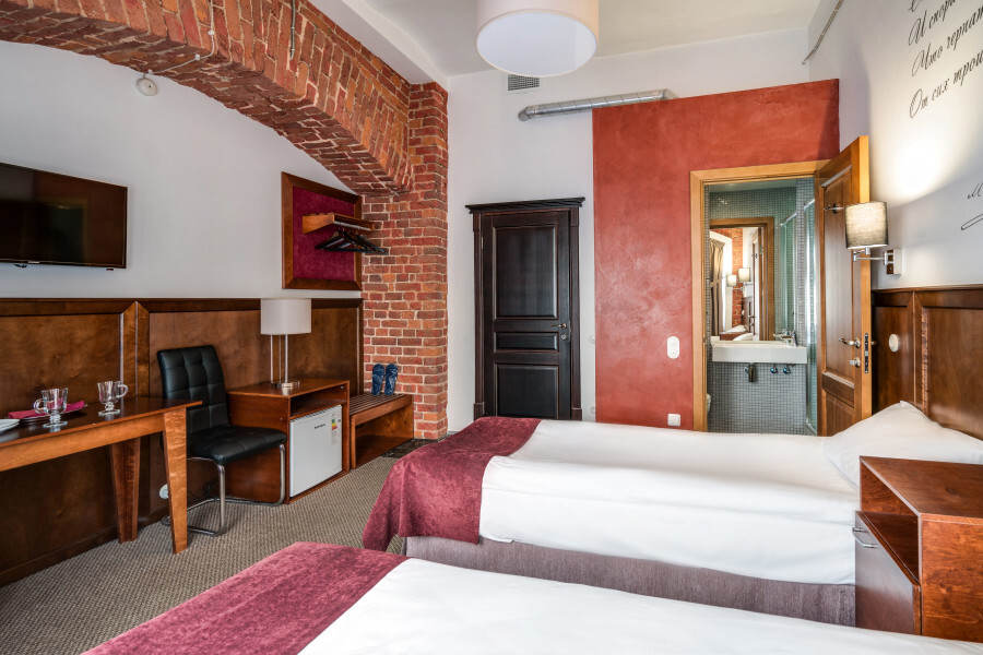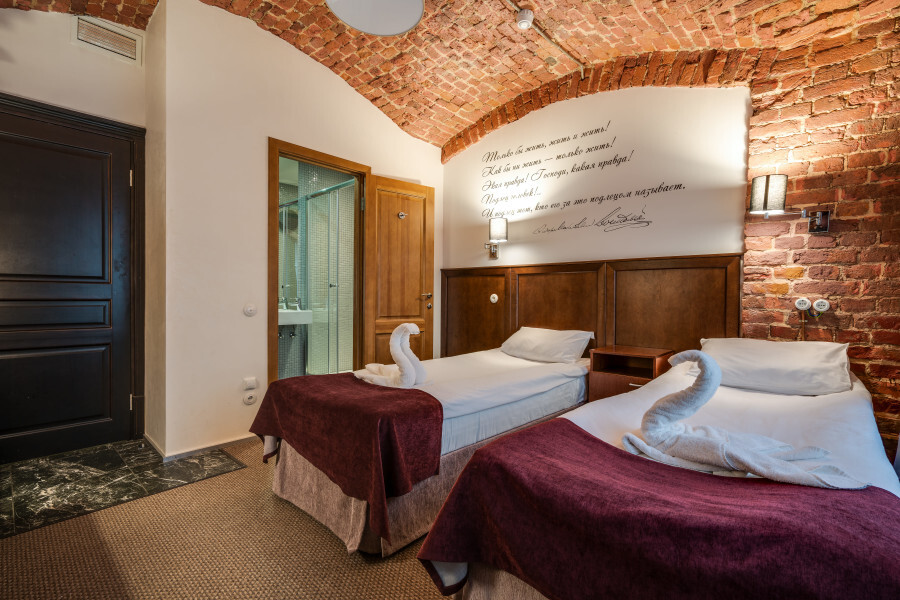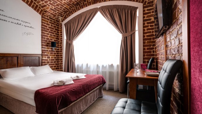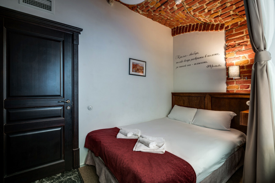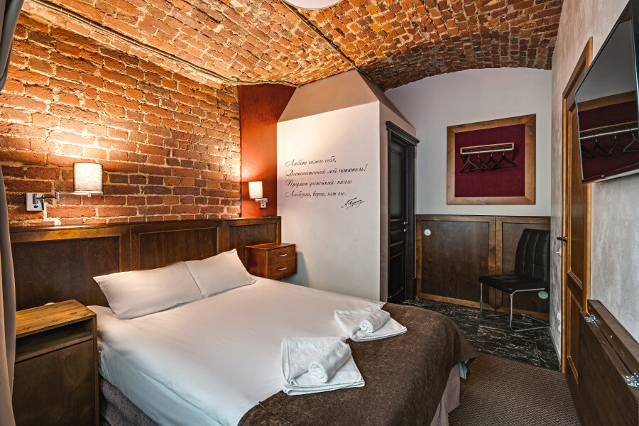 Каждому номеру присвоено имя одного из великих поэтов, оформление в стиле лофт, расположены только на первом этаже, качественная сантехника, в душевой пол с подогревом, общая система кондиционирования, наличие халатов.