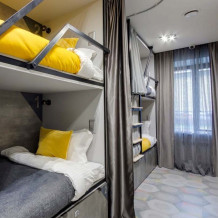 Индивидуальное одноместное пространство 110/200 в общей 8-местной комнате, отгороженное black out шторой, с ортопедическим матрасом, LED светильником и розеткой 220V.