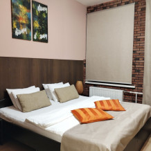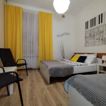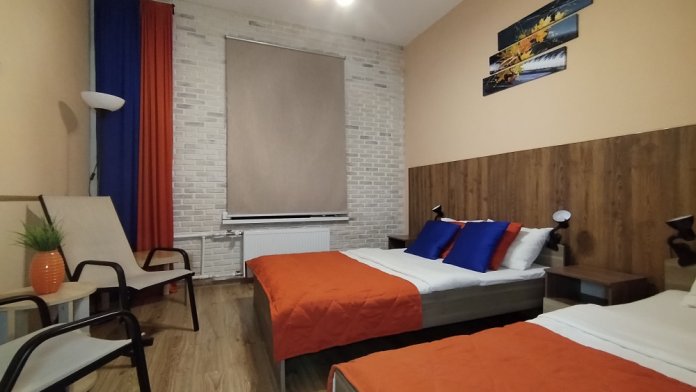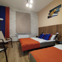 Комната, оформленная в теплых тонах. Размещение от 1 до 3 человек. Возможно еще один ребенок без предоставления отдельного места. Имеется собственная ванная комната и мини-кухня. Гости могут пользоваться стиральной машиной, гладильным принадлежностями, фенами, аптечкой, которые находятся в общей зоне.