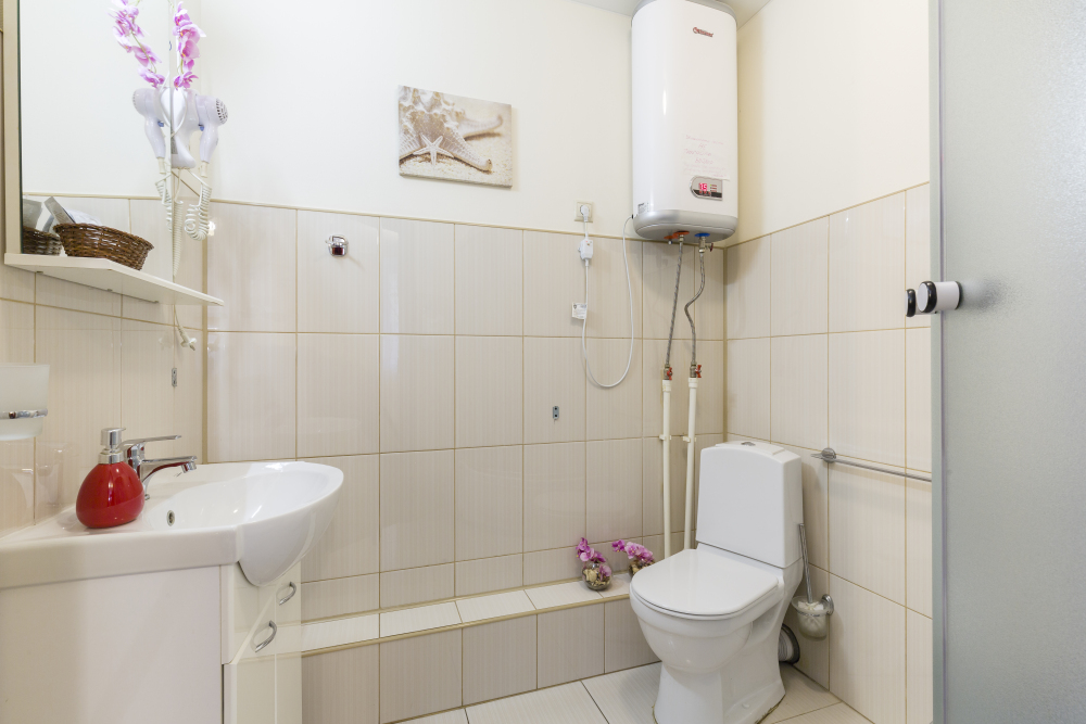 Гостей ожидает уютное спальное место и светлая ванная комната с большим окном.