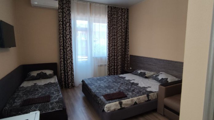 Для размещения гостей однокомнатные и двухкомнатные номера, оснащенные новой современной мебелью с ортопедическими матрасами, сплит системой, телевизором, феном, холодильником, и собственным санузлом. Все 14 комнат имеют свой выход на балкон с видом на горы.