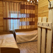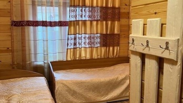 На 2 этаже коттеджа - 3 спальни. В каждой 2-спальная кровать, шкаф, тв плазма, возможно установить доп. кровати. На 1 этаже - Гостевая комната, с диваном, столом, камином, домашним кинотеатром. Ванная комната: душевая кабина, раковина с тумбой и зеркалом, туалет, ванна, фен, туалетные принадлежности, 6 комплектов полотенец, стиральная машинка. Кухня оборудована: чайник, холодильник, микроволновка, духовой шкаф, посудомоечная машина, посуда, барная стойка с стульями. В коттедже: Русская баня; Своя уличная территория: Парковка; Мангальная зона; Большая беседка; Летом бассейн и батут.