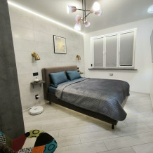- Кровать в спальне от фирмы «MOON» с бескаркасным матрасом размером 160 × 200 см - для крепкого сна.