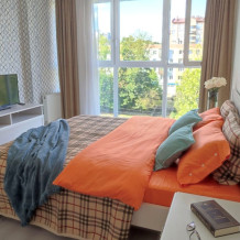 - Удобства: комфортная двуспальная кровать, диван-кровать, гардеробная, просторная кухня.