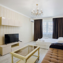 - В апартаментах возможно заселение с небольшими питомцам за доплату по договоренности.