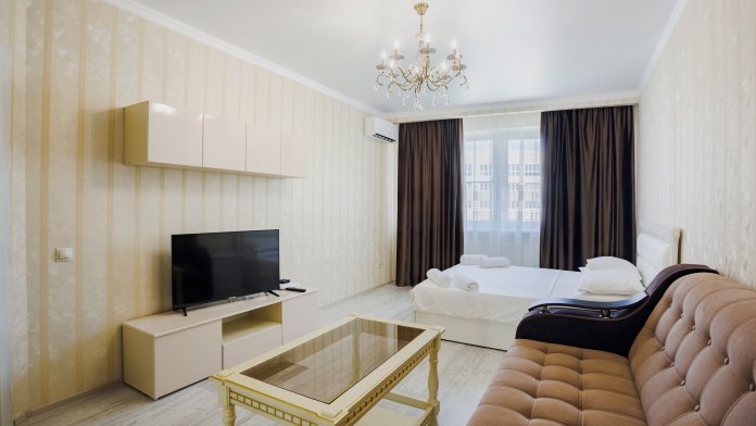 Рады приветствовать Вас! У нас в апартаментах есть все необходимое для комфортного проживания: бесплатный Wi-Fi, кондиционер, свежее постельное белье и полотенца, телевизор, ванная комната, душ, туалет, гигиена (туалетная бумага, жидкое мыло), стиральная машина, холодильник, оборудованная кухня и посуда.