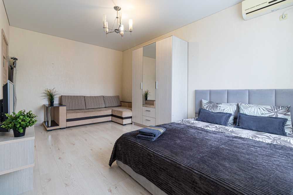 Рады приветствовать Вас! У нас в апартаментах есть все необходимое для комфортного проживания: бесплатный Wi-Fi, кондиционер, свежее постельное белье и полотенца, телевизор, ванная комната, душ, туалет, гигиена (туалетная бумага, жидкое мыло), стиральная машина, холодильник, оборудованная кухня и посуда.