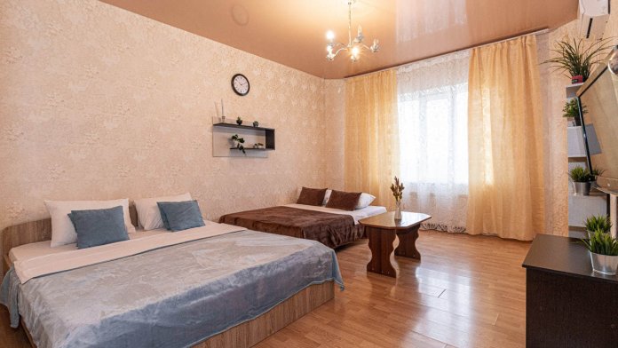 Рады приветствовать Вас! У нас в апартаментах есть все необходимое для комфортного проживания: бесплатный Wi-Fi, кондиционер, свежее постельное белье и полотенца, телевизор, ванная комната, душ, туалет, гигиена (туалетная бумага, жидкое мыло), стиральная машина, холодильник, оборудованная кухня и посуда.