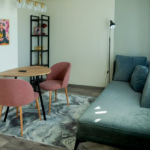 Квартира удобна для размещения 3 гостей, две раздельные комнаты, в которых размещены двуспальная кровать и двуспальный диван. Квартира полностью оборудована всем необходимым: двуспальная кровать с ортопедическим матрасом, кондиционер, водонагреватель, холодильник, духовой шкаф, микроволновая печь, посудомоечная машина, телевизор Smаrt ТV и Wi-Fi, фен, утюг и гладильная доска, пылесос, стиральная машина.