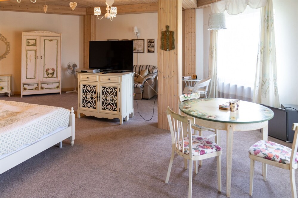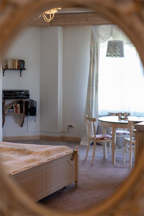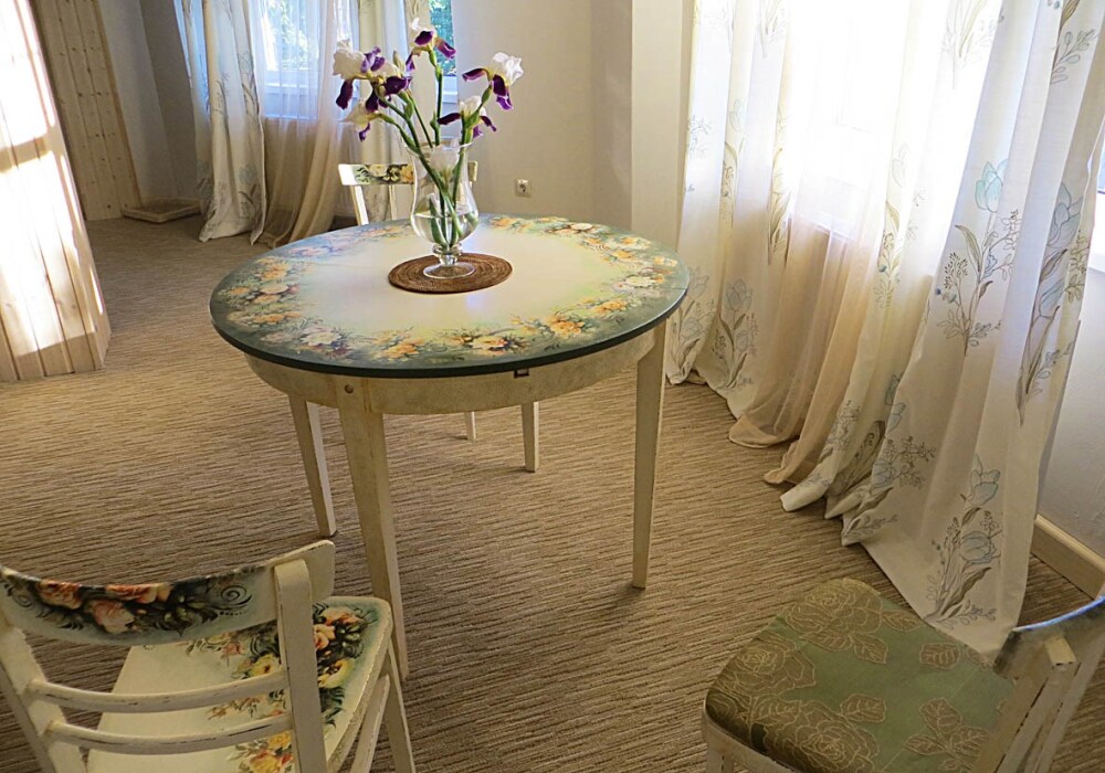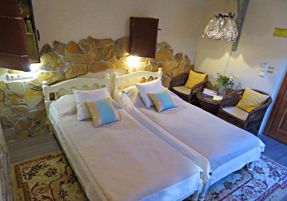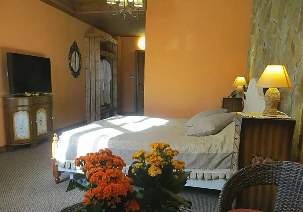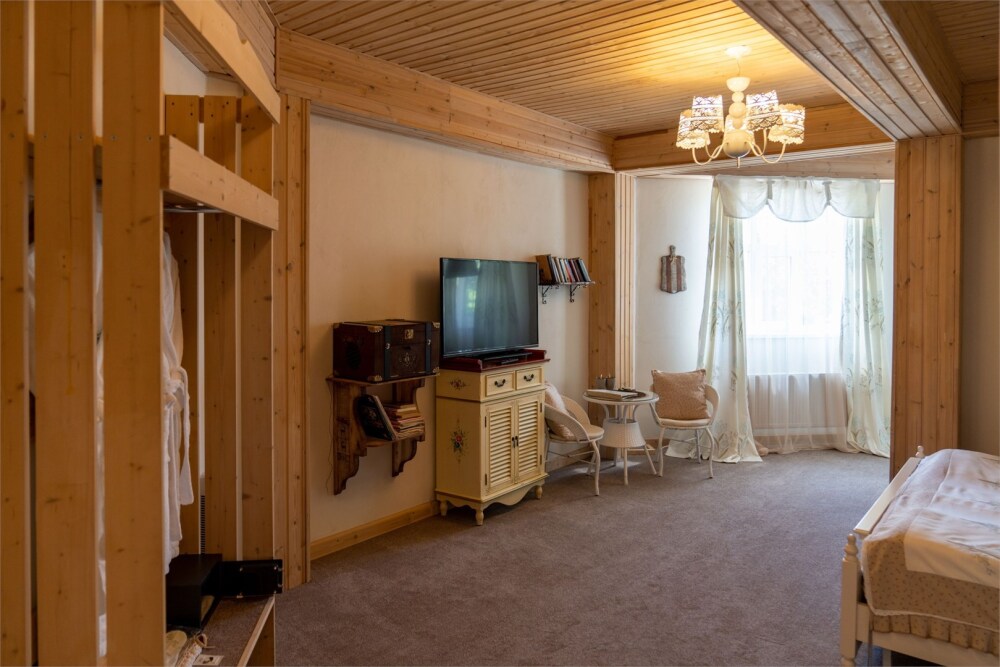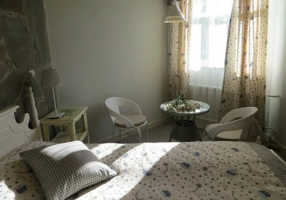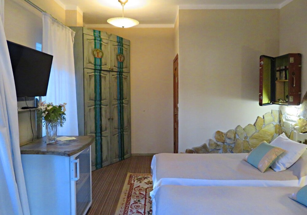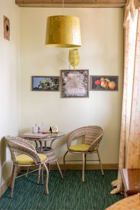 Трехэтажное здание гостевого дома располагает номерным фондом 20 номеров и может одновременно разместить до 48 гостей. Небольшая численность гостей обеспечивает в гостевом доме атмосферу уединения, тишины и домашнего уюта, и в то же время позволяет уделять каждому гостю максимум внимания.