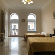 Просторный тихий номер, два окна во двор. Рядом с номером просторная гостиная зона с большим телевизором, и оборудованием (микроволновка, куллеры, чайник, большой холодильник). Удобства на 2 номера: отдельно душ просторный с раковинной и отдельно туалет.