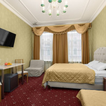 Уютный просторный номер с 2 окнами. В номере свой холодильник, ЖК телевизор, полотенца, тапочки, фен. Ежедневная уборка.