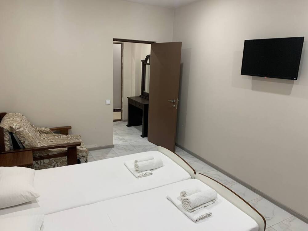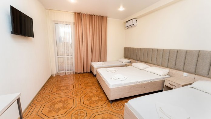 В отеле предусмотрено все для комфортного семейного отдыха: подогреваемый бассейн на территории, ресторан в котором организовано полноценное 3-х разовое питание по системе «Шведский стол», детская площадка и анимационные программы для детей и взрослых. Все номера отеля оснащены сплит-системами, холодильниками, современными ТВ и балконами.
