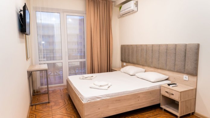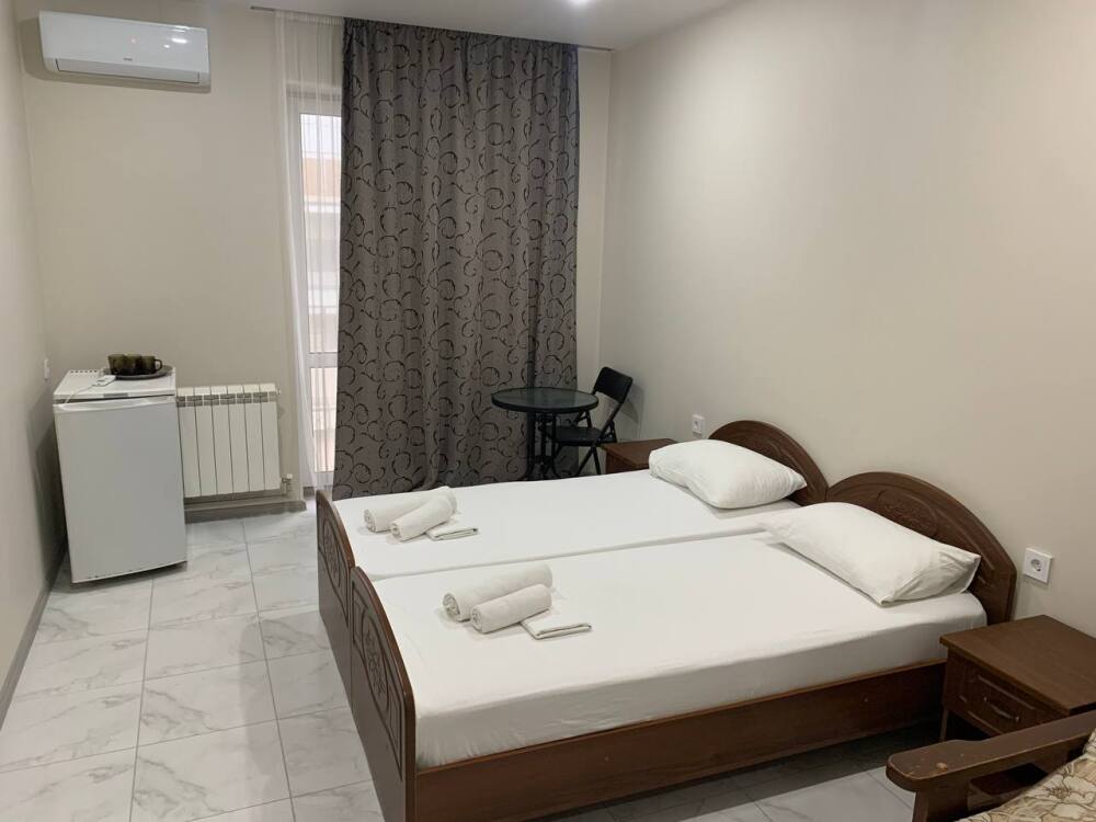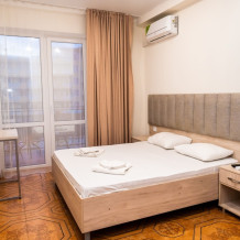 Уютный однокомнатный номер с одной двуспальной или двумя односпальными кроватями, креслом-кроватью и балконом.