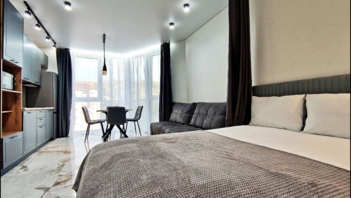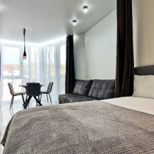 В квартире: кондиционер, широкая двуспальная кровать с удобным матрасом, раскладной диван, постельные принадлежности (подушки, одеяла, простыни, пододеяльники, наволочки), телевизор с плоским экраном, вместительный шкаф, утюг с гладильной доской. Кухня: