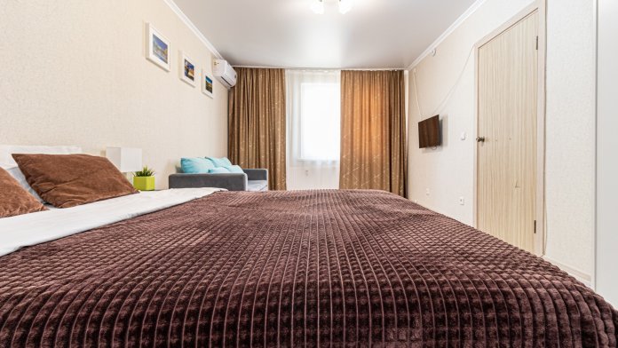 Рады приветствовать Вас! У нас в апартаментах есть все необходимое для комфортного проживания: бесплатный Wi-Fi, кондиционер, свежее постельное белье и полотенца, телевизор, ванная комната, душ, туалет, гигиена (туалетная бумага, жидкое мыло), стиральная машина, холодильник, оборудованная кухня и посуда.