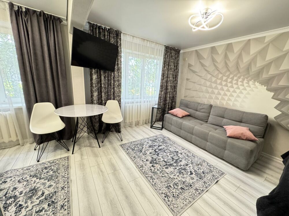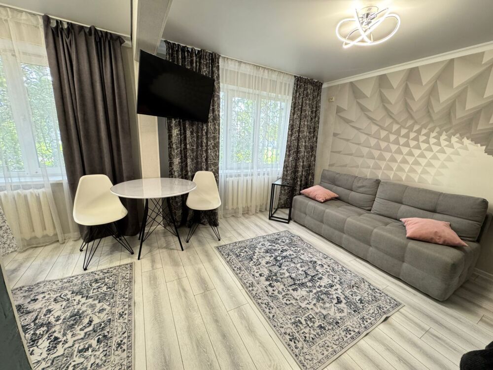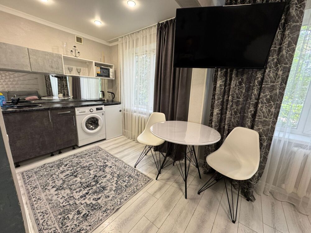 Отличная студия центре города . Вся бытовая техника: стиральная машина , холодильник, микроволновая печь , утюг, смарт ТВ. Два спальных раздельных места, двуспальная кровать и диван .Квартира расположена вдоль трамвайных путей, рядом пенсионный фонд ,рынок , судебные пристава, МФЦ, рег. палата.