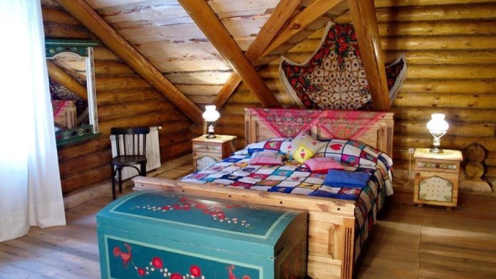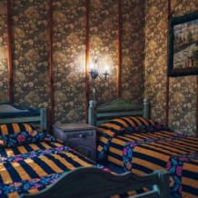 Двухуровневый номер с индивидуальным дизайном и мебелью ручной работы в деревянном доме в стиле времен А.П.Чехова. В номере - две раздельные кровати, два дивана, две тумбочки, четыре стула, два стола, комод, холодильник, телевизор, электрочайник, фен, тапочки. Ванная комната с душем, два санузла.