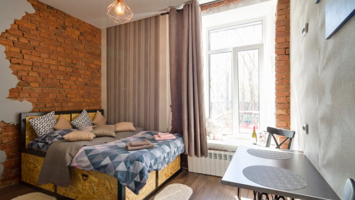 Квартира-студия с большой кованой прочной кроватью, уникальным столом, кухней, оборудованной плиткой, всей необходимой посудой, вытяжкой и электрическим чайником. Нашим гостям всегда предоставляются свежее постельное бельё и полотенца. В распоряжении гостей стиральная машина, фен, сушка для белья, утюг.