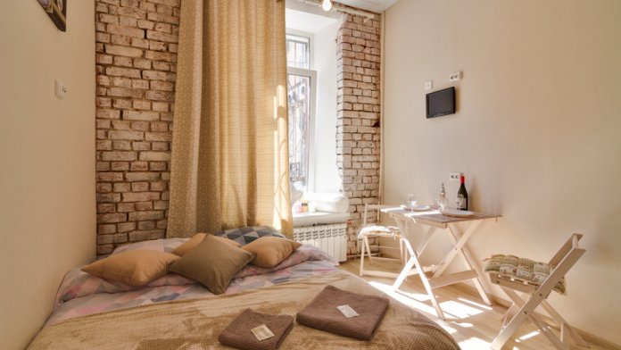 В апартаментах дизайнерский ремонт; всё необходимое для комфортного пребывания: удобная двуспальная кровать, оборудованная кухня, стиральная машина а также санузел.