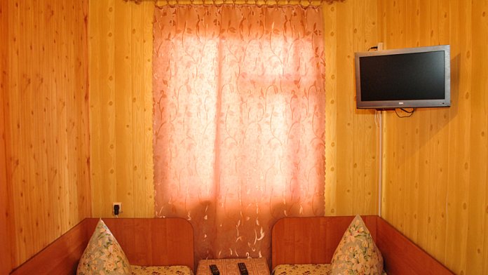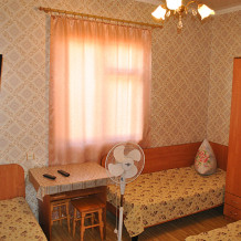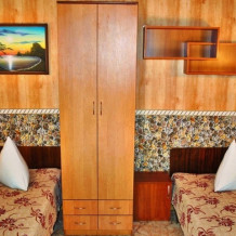 Комната находится на 2-м этаже главного корпуса. В комнате есть холодильник, вентилятор, телевизор со спутниковыми каналами, шкаф, одна 2-х спальная и две односпальных кровати. В коридоре находится мощный кондиционер.