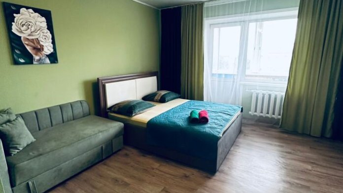 Очень теплая квартира. Достойная однокомнатная квартира , вблизи к АКГ, район стройки. 2 спальных раздельных места, двуспальная кровать и софа ( односпальная).