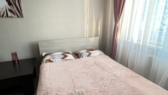 Однокомнатная квартира на высоком этаже. 3 спальных раздельных места. Двуспальная кровать , 2 дивана .