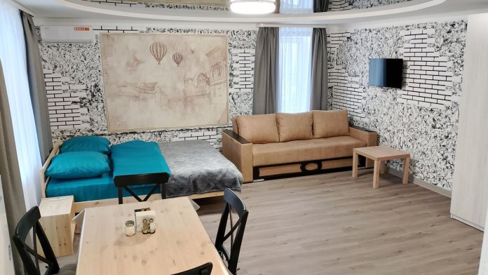 1- комнатная квартира-студия с новым дизайнерским ремонтом, в 5 минутах от центра.