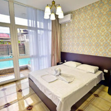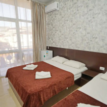 Номера гостевого дома оформлены в современном стиле, с новым ремонтом и полным набором удобств: балконом, душем и туалетом, сплит-системой, телевизором и Wi-Fi. Всё это обеспечивает комфортное проживание и отдых. Дом имеет три этажа, услуга выбора этажа недоступна.