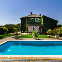 Просторная двухэтажная вилла рассчитанная на 20 гостей. Вилла оборудована всем необходимым для комфортного отдыха и проживания. В доме 8 комнат: 7 спален и гостиная. Спальные места представлены: 7 двуспальными кроватями, 4 односпальными и раскладным двуспальным диваном. Каждая спальня оснащена телевизором, сплит-системой, прикроватными тумбочками и шкафом для хранения личных вещей. Просторная гостиная оборудована: телевизором, музыкальным центром, большим обеденным столом на 12 персон а также мягкой мебелью. Помещение кухни укомплектовано бытовой техникой: холодильник, СВЧ печь, электрический чайник, посудомоечная машина, электрическая плита с духовым шкафом для приготовления еды. Посуда и столовые приборы на 20 персон. Турка для варки кофе. Чай, сахар.