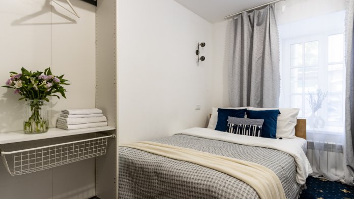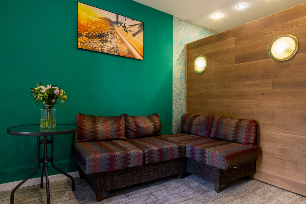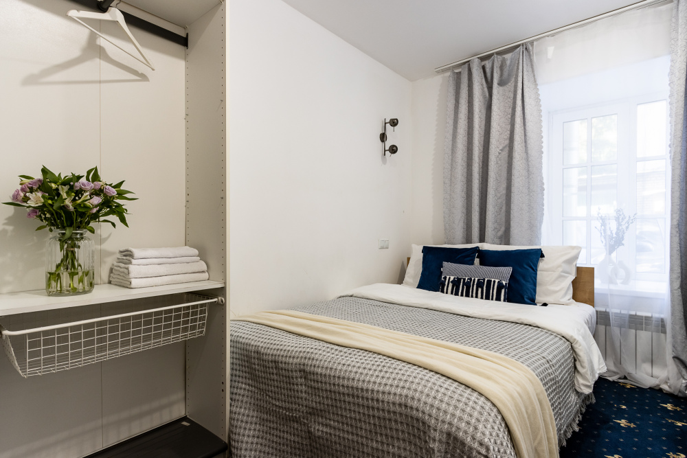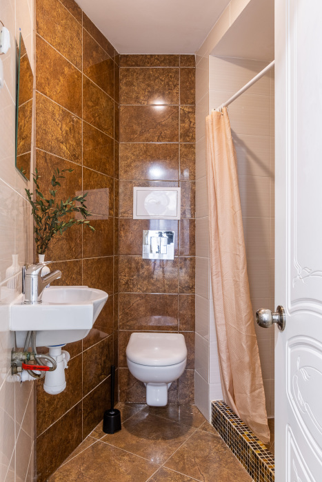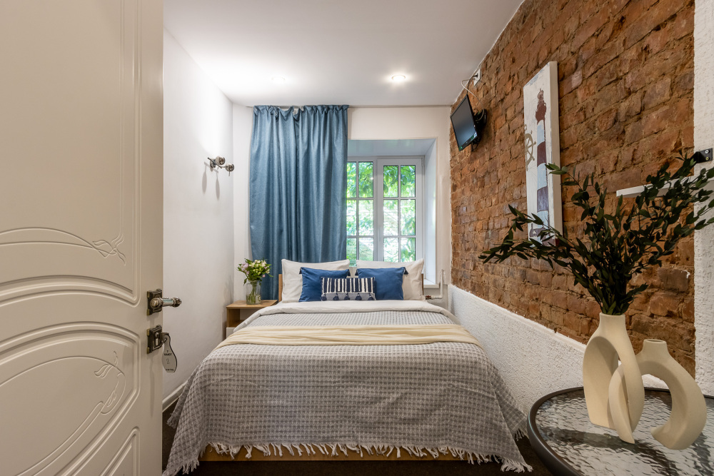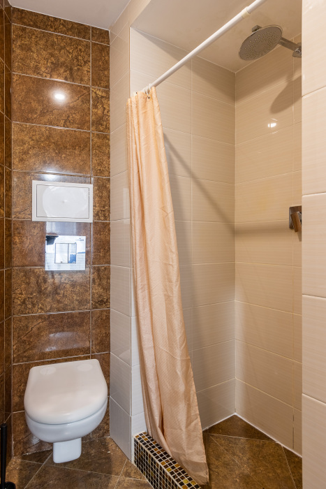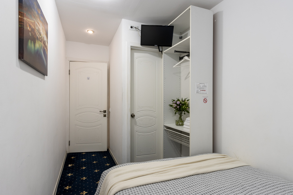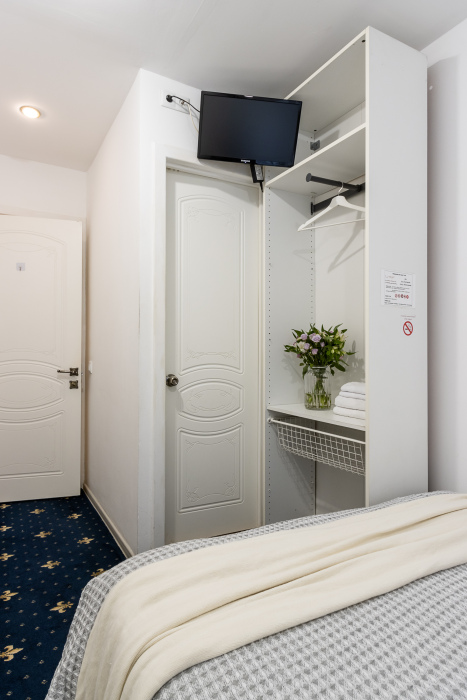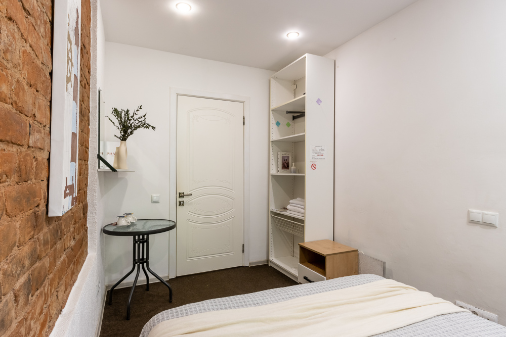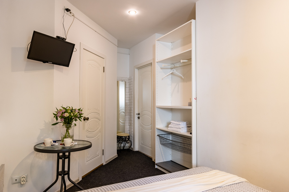 Комната с двумя односпальными кроватями, площадью 10 кв.м. Собственная ванная комната с душем располагается через коридор.