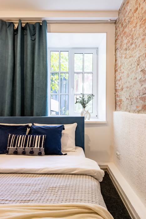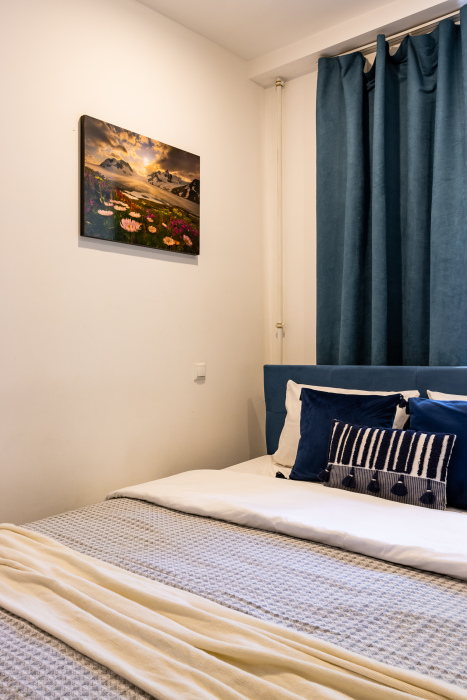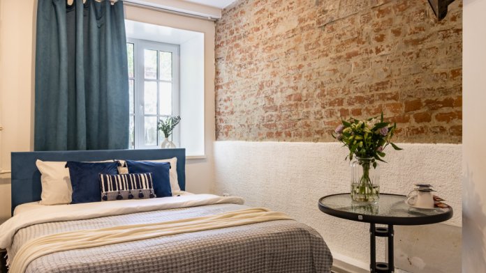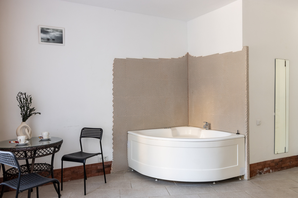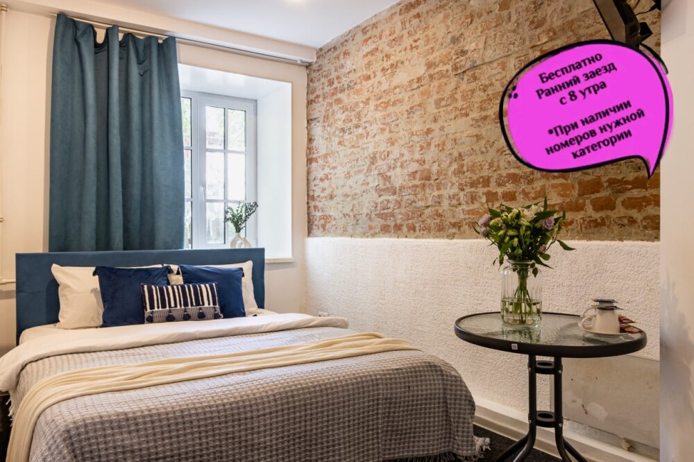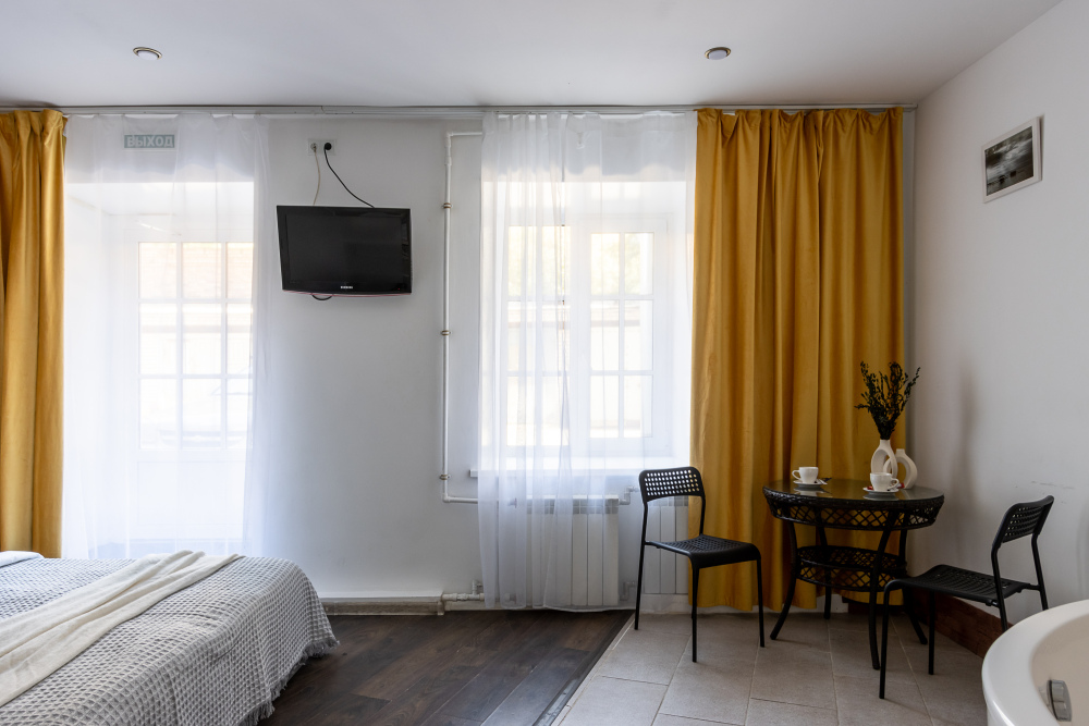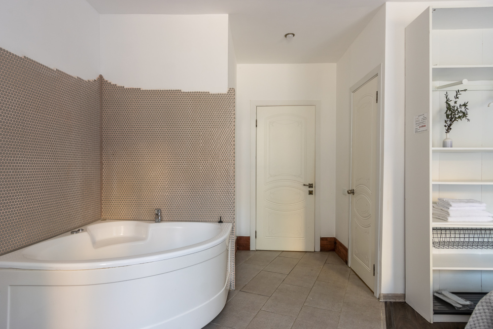 Комната с двуспальной кроватью, площадью 15 кв.м. Возможно размещение на двух односпальных кроватях. Собственная ванная комната с джакузи находится в номере.
