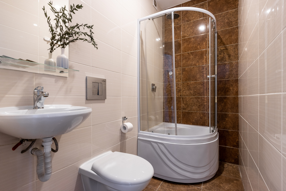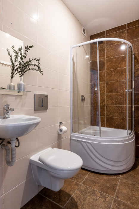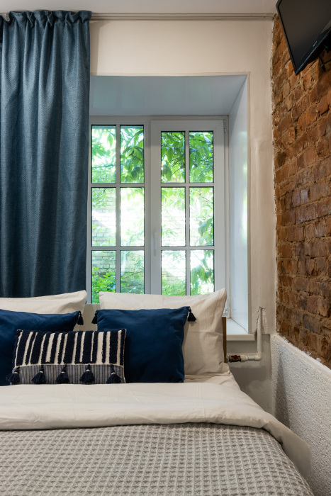 Комната с двуспальной кроватью или двумя односпальными кроватями, площадью 13 кв.м. Собственная ванная комната с душем находится в номере.