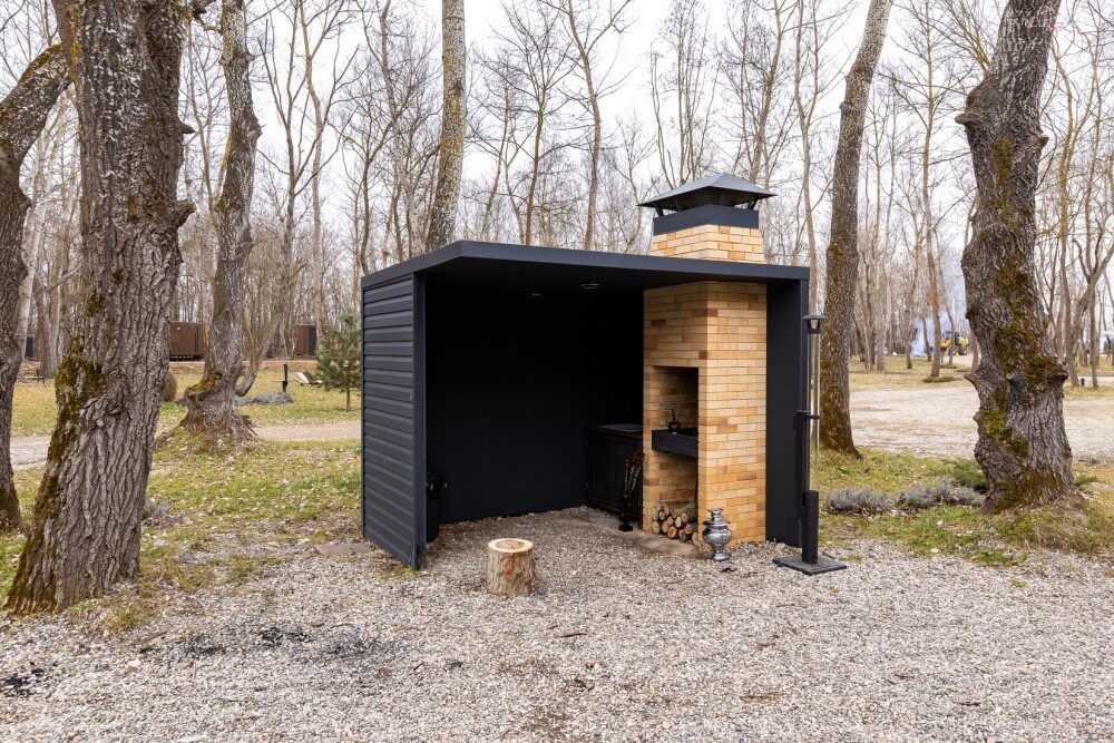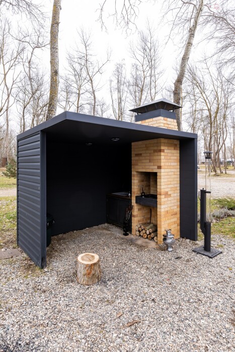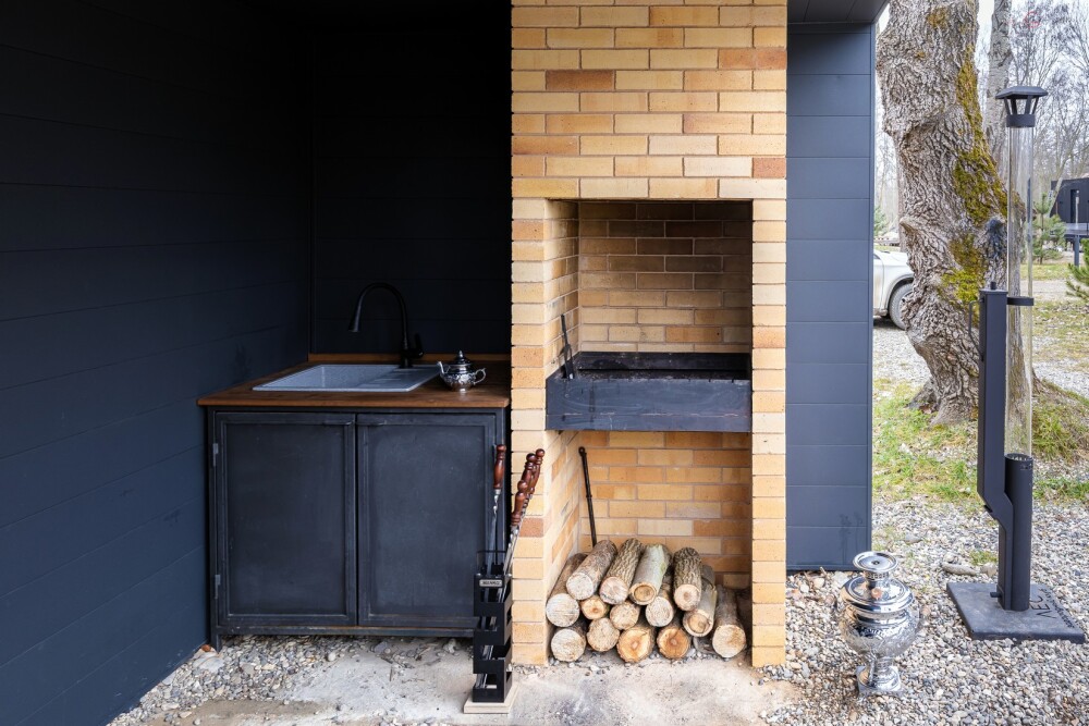 Рядом с домом есть собственная крытая мангальная зона, которая оборудована всем необходимым для приготовления блюд на огне.