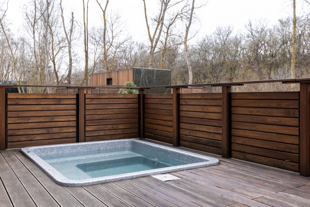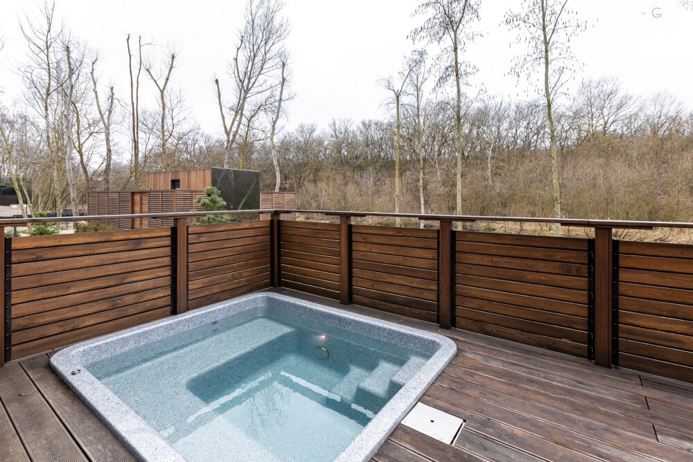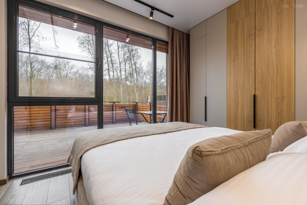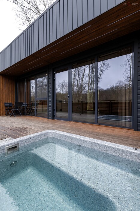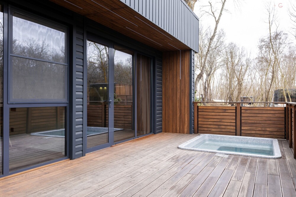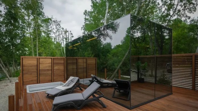 Зеркальные дома на берегу реки с приватной террасой и теплой джакузи.