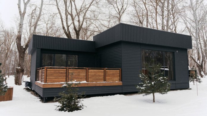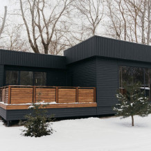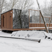 Зеркальный дом на берегу реки площадью 36 кв.м с видом на реку и лес.